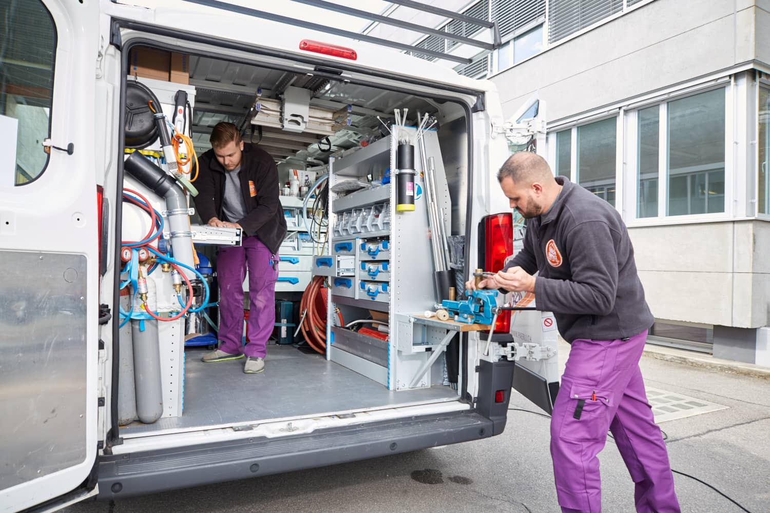 Schon von der Ausstattung der Pärli Service-Wagen zeigt sich die Kundschaft immer wieder beeindruckt. Sie beinhalten nicht nur Werkzeuge aller Art, sondern auch Verschleissteile und Ersatzmaterialien. Vor einiger Zeit ist die Ausrüstung aber um ein wichtiges Element erweitert worden: das Tablet. Dank diesem Tool wissen die Pärli-Crews über die Geschichte der Kunden-Anlagen Bescheid und können Rapporte elektronisch ins Büro übermitteln. Die entsprechende Zeitersparnis kommt letztlich der Kundschaft zugute. Zumal diese auch proaktiv auf anstehende Entkalkungen und Wartungsarbeiten aufmerksam gemacht werden kann.
