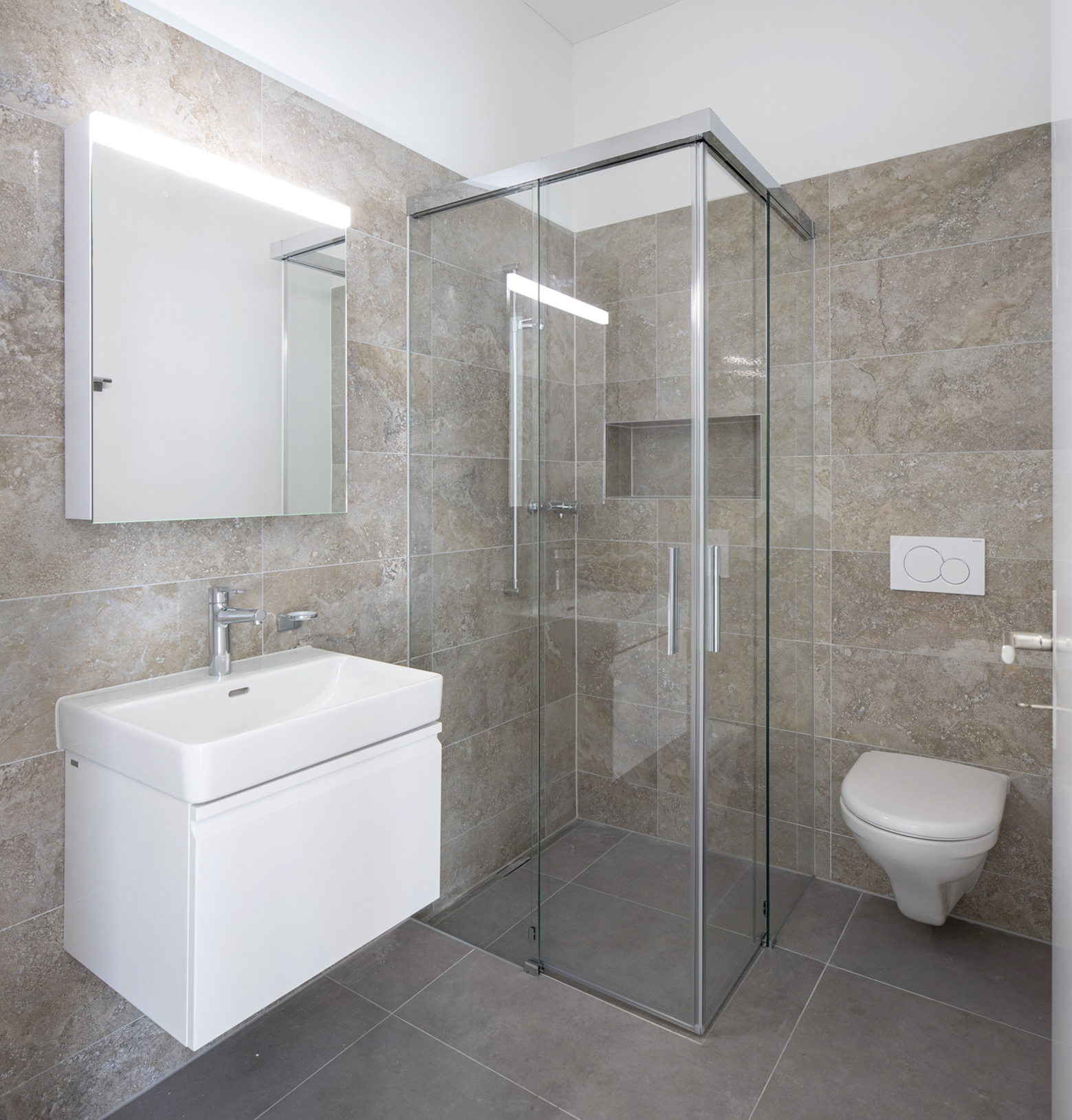 Für Einwohner des Quartiers Mett wird die betreffende Parzelle wohl noch viele Jahre lang einfach «Bären» heissen, denn das war der Name des Restaurants, das dort seit Urzeiten stand. Diesem Umstand trägt nun der neue Name des Objekts Rechnung. Es wird vermarktet unter dem Namen «Bären – Tour de l’Ours». «Im Zentrum stehen dabei die Mietwohnungen auf den Stockwerken drei bis sieben», erzählt Schneider. «Sie weisen einen sehr hohen Ausbaustandard aus, namentlich die Badezimmer wirken sehr edel.» Pärli hatte neben der Heizung auch die gesamten Sanitärarbeiten in Auftrag, bis hin zur Ausstattung der Badezimmer.