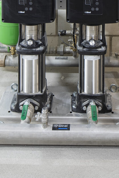 Hat denn diese spezielle Form auch besondere Herausforderungen er- geben? «Eigentlich nicht», erläutert Schneider, «einzig die Höhe bedeu- tete Anforderungen, die wir uns in Biel auch als so routinierte Firma wie Pärli nicht gewohnt sind.» So muss- te nicht nur eine Druckerhöhungs- anlage installiert werden, damit das Wasser auch vom vierten Stock auf- wärts noch mit genügend Power aus der Leitung strömt, auch ein Neben- lüftungssystem musste eingebaut werden. «Sonst würde es im Parterre blubbern, wenn im siebten Stock ge- spült wird», erklärt er lachend.
