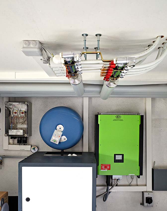 En tant que chef d’équipe chauffage et détenteur du brevet fédéral de conseiller énergétique des bâtiments, Marco Bachofner connaît la matière à fond. Il conseille les clients sur les besoins en énergie et les possibilités d’économie dans les bâtiments. «Bien sûr, on ne construit pas une maison sans raccordement électrique, on veut être paré à toute éventualité», dit-il. Mais en fait, le terme d’autarcie impliquerait tout à fait qu’il existe une solution énergétique isolée.