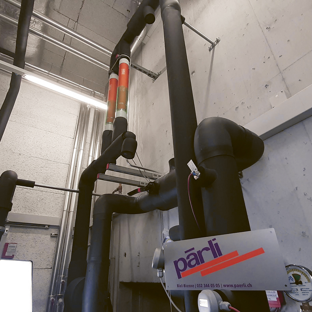 La pompe à chaleur géothermique de FANUC Switzerland GmbH (cf. encadré) fonctionnait en soi sans aucun problème. Mais tous les quelques mois, un débit insuffisant était détecté et des messages de dysfonctionnement étaient émis. «Nous devions démonter les échangeurs à plaques et les nettoyer à haute pression», rapporte Pascal Schatt, chef d’équipe chez Pärli. «À chaque fois, ils étaient complètement envasés par des bactéries ‹ferreuses›.»