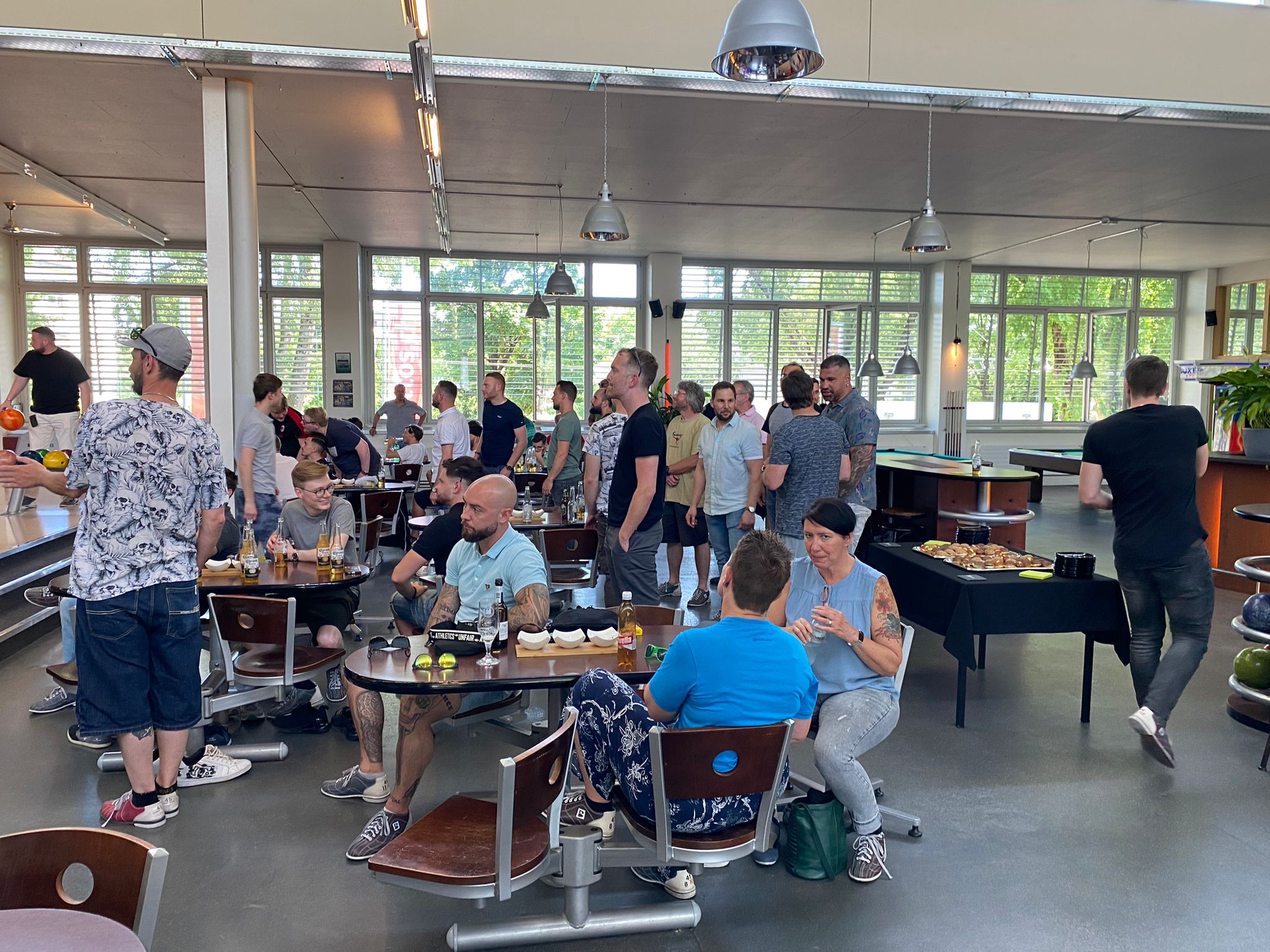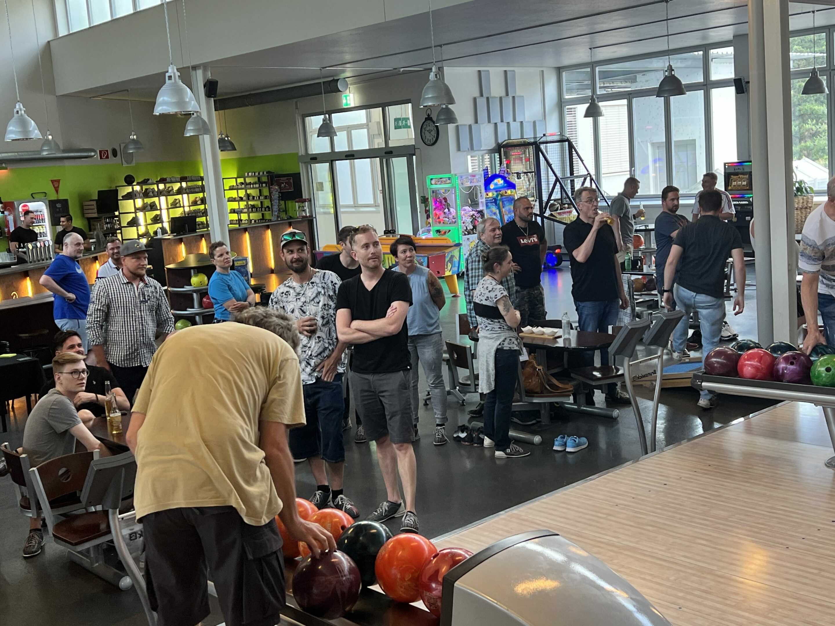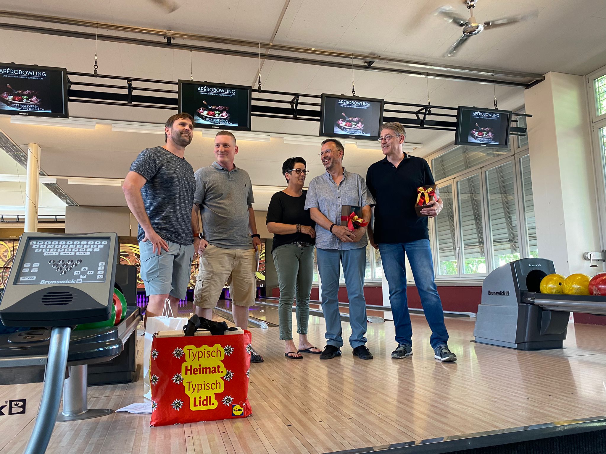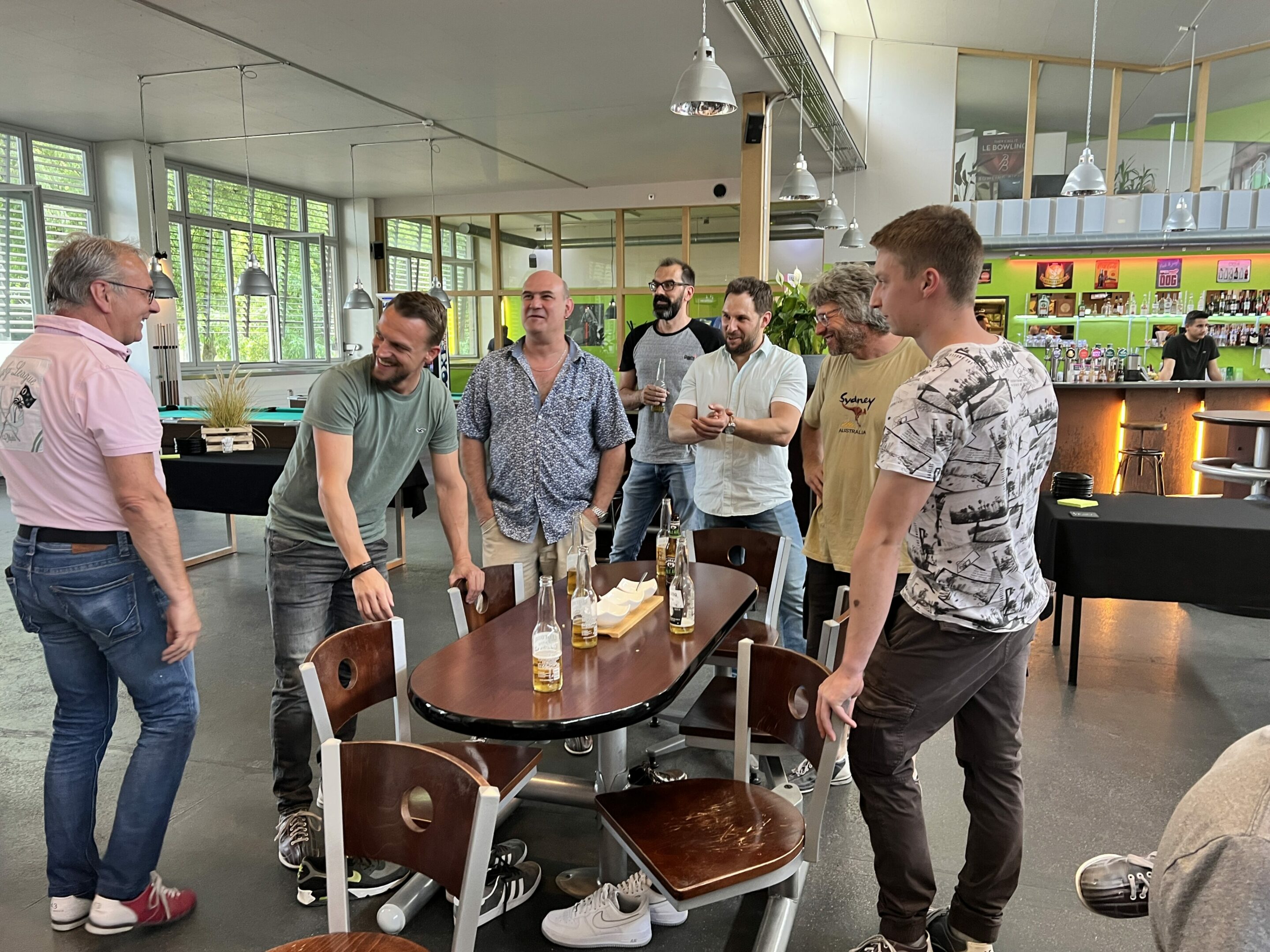 À l’occasion des changements au sein de l’équipe de direction, tout le personnel a été invité début juin pour passer un après-midi et une soirée ensemble. L’événement a commencé par une partie de bowling. Au cours de l’apéro qui a suivi, Daniel Wüthrich, René von Büren et Michel Pasche se sont adressés aux personnes présentes. Ensuite, un bus découvert nous a amenés jusqu’au bord du lac, où un coin avait été réservé au «Summer Now» pour terminer en beauté la journée avec de la musique, de délicieuses grillades et une bonne bière à la main.