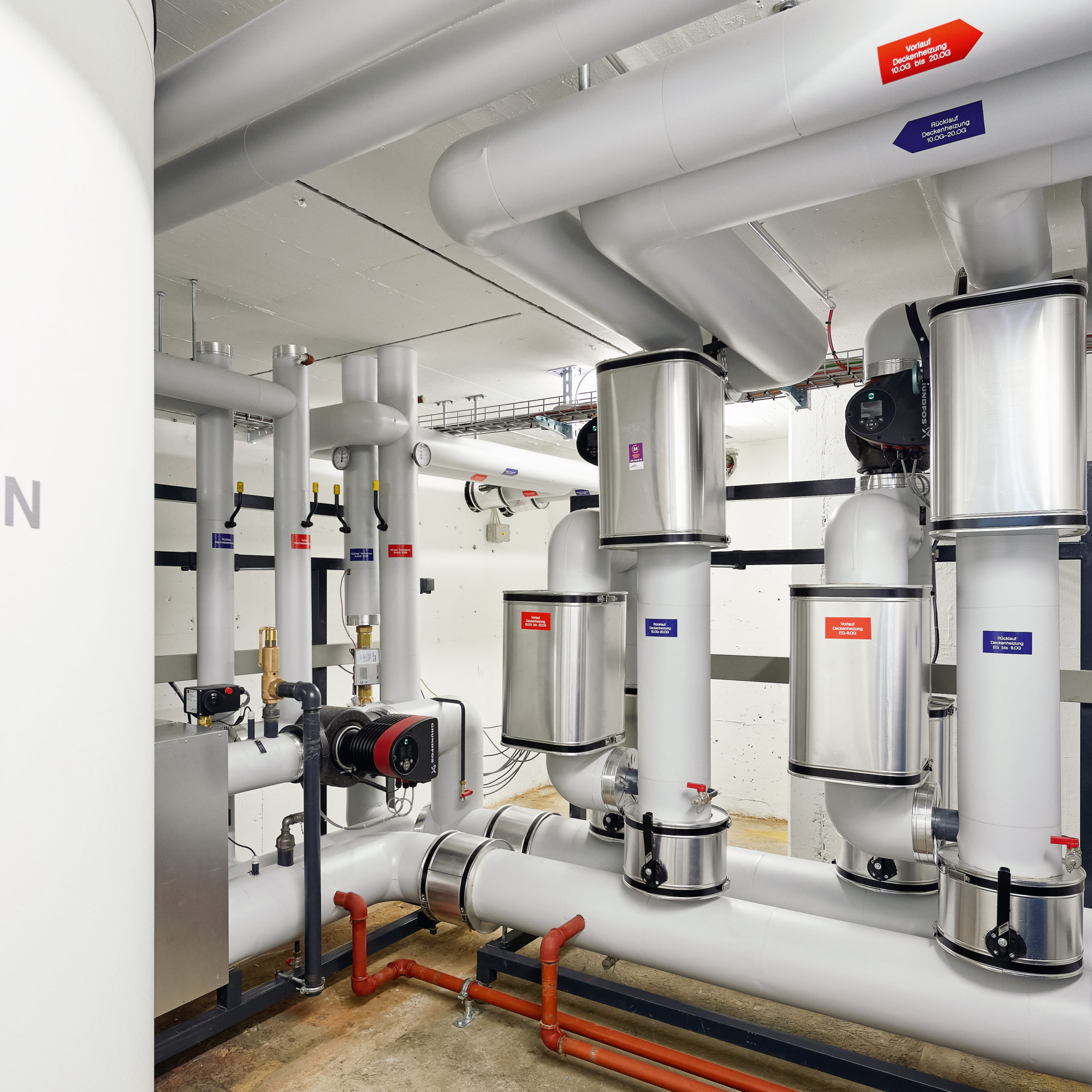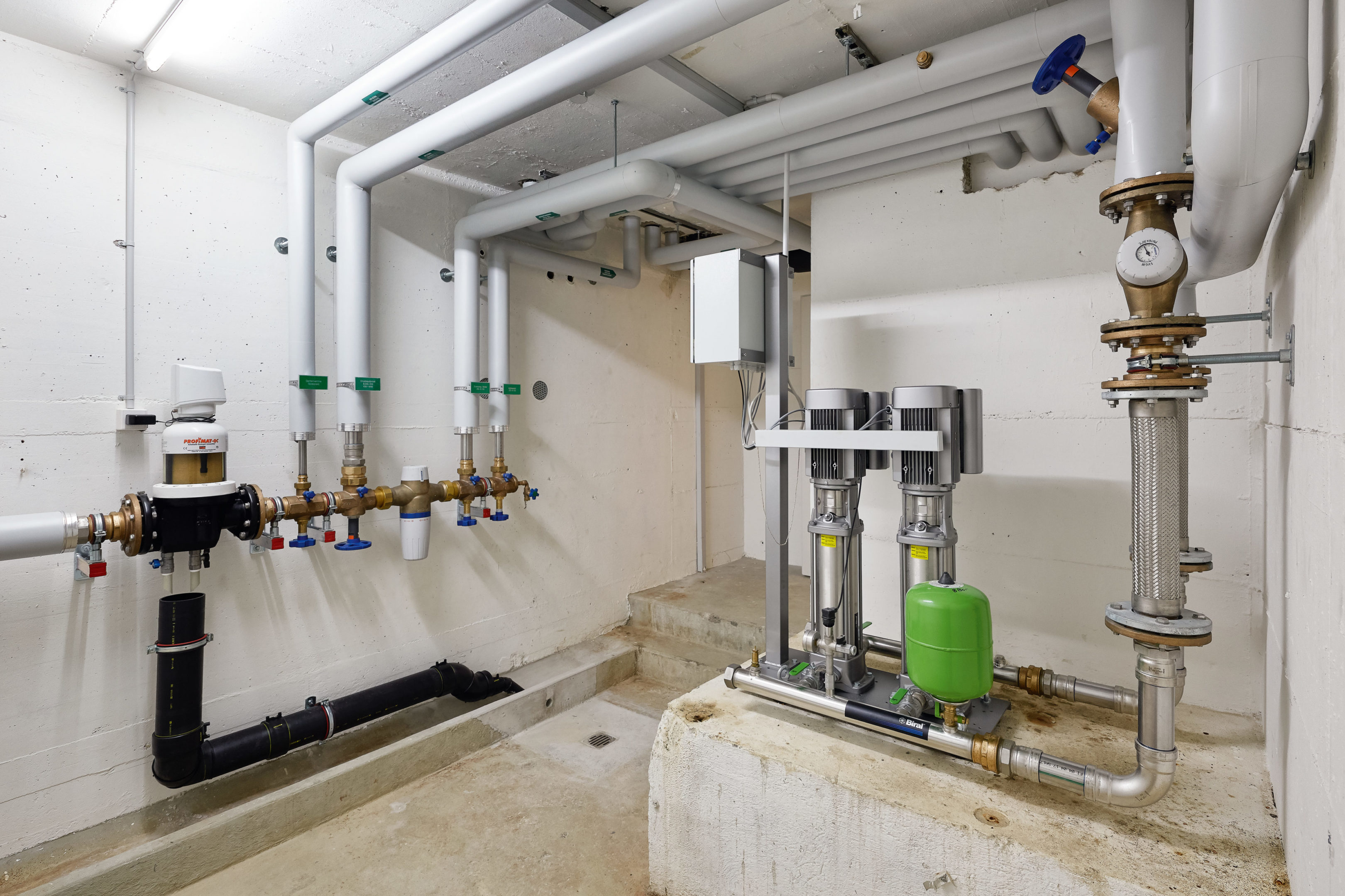 Pärli a obtenu l’adjudication, notamment à cause de sa taille. «Nous sommes en mesure de fournir assez de personnel de montage et disposons d’un back office qui s’occupait des commandes et de la coordination», dit Yves Schaad. La société Bauleitung GmbH avait la charge de l’évaluation des appels d’offres. Le mandat comprenait d’abord l’évidement des salles de bain et des cuisines des 74 appartements, sans oublier toutes les conduites d’eau chaude, d’eau froide et d’eaux usées. Il fallut ensuite tirer toutes les nouvelles conduites et les nouveaux écoulement pour les installations sanitaires. «La hauteur du bâtiment était naturellement un défi à cet égard», explique Yves Schaad. «L’eau a besoin de pression, et pour la garantir, il a fallu installer un groupe de surpression pour les étages supérieurs.» Les conduites pour l’eau de pluie faisaient aussi partie du mandat, surtout celles de la terrasse sur le toit de la maison-tour.